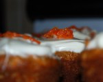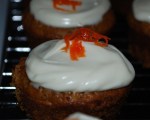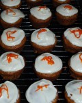 Tonight I made a carrot ginger cupcake with cream cheese icing. I attempted to candy some carrot strips for decoration, but don’t think I cooked them long enough. I’ve never made candy before, so I’m not sure about how to do that….