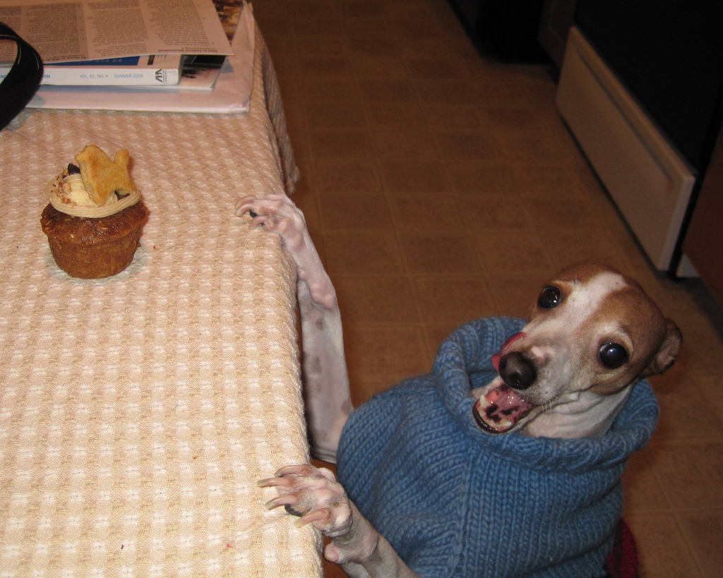 Today, Sofie turned 5! She was treated with a carrot and apple pupcake from West Seattle Dawg. Her rating was 4 paws. I thought the cupcake was extremely cute.