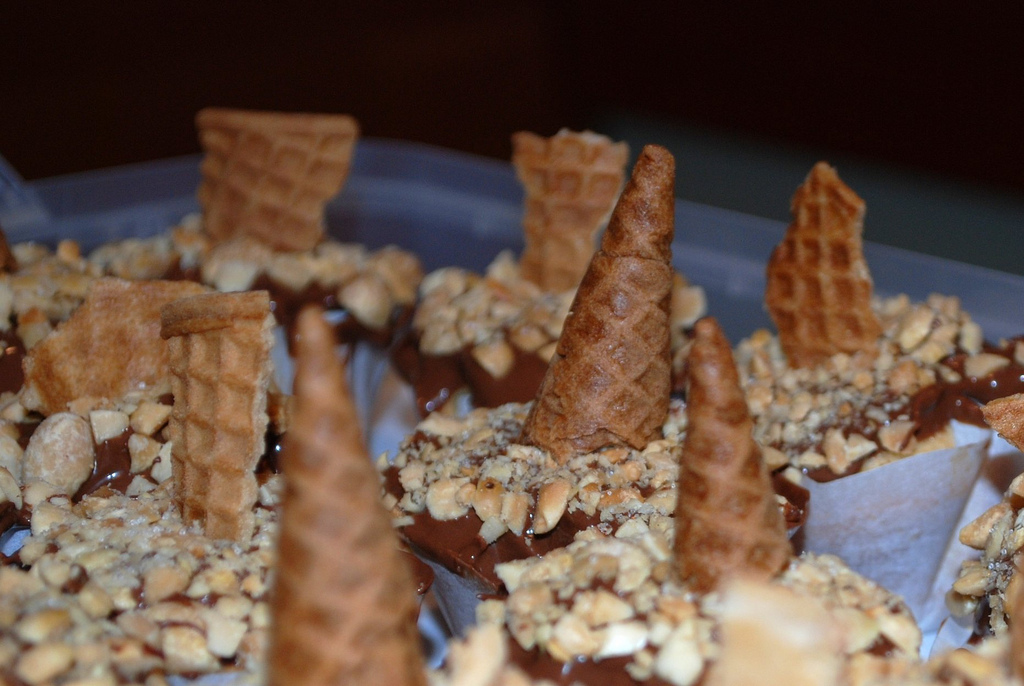 I broke some of the other sugar cones for a garnish.  I think they were a success, even though the cake was a bit dry.