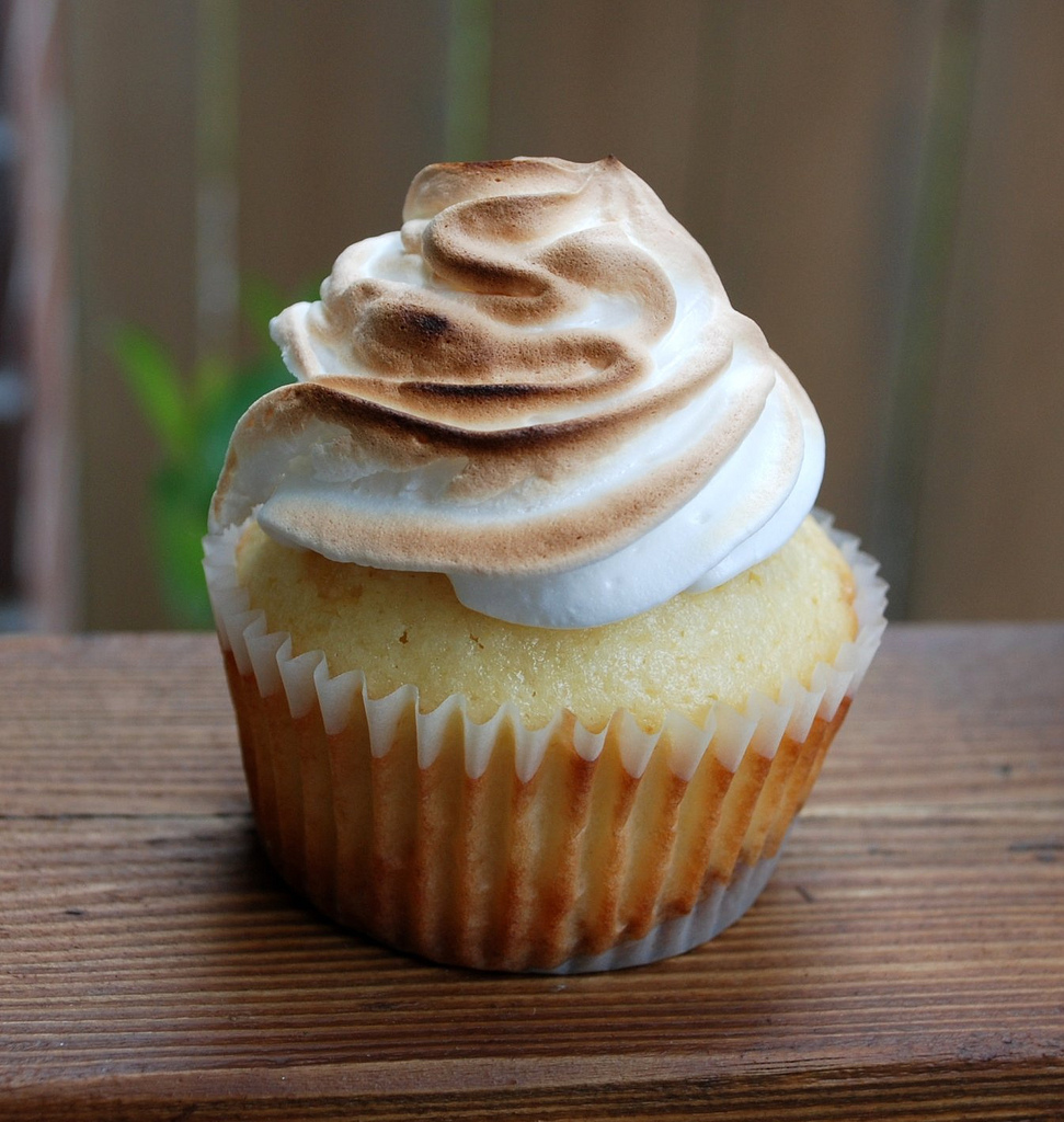 I used the standard Cook’s Illustrated vanilla cupcake recipe and made a couple of revisions. I didn’t have sour cream, so I used a container of plain (Greek) yogurt. I also thought they would need to go into the frig because of the meringue, so I used oil instead of butter. I added the zest of 2 lemons to the batter as well.