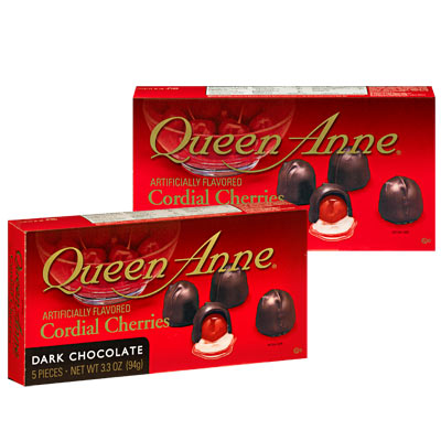 The Queen Anne® Chocolate company describes these candies on their website as “The perfect combination of sophisticated dark chocolate and premium cherries for an ideal Dark Chocolate Covered Cordial Cherry.” My grandmother LOVED these and thus these were a perfect Christmas gift for her every year. I abhor Maraschino cherries anyway. (What’s the deal with brined artificially colored fruit?) I especially don’t like biting into a chocolate and having it squirt liquid into my mouth. I like the idea of it even less after reading this article on chocolate covered cherries. Apparently the cherries are coated in an enzyme then covered in fondant before being covered in chocolate. This enzyme over time breaks down the sugar in the fondant into sugar syrup. So…if you ate a chocolate covered cherry that hadn’t been aged properly, you’d end up with no liquid inside. I might like that better. I like Chukar® Cherries’ chocolate covered cherries; they consist of a dried cherry dipped in chocolate.