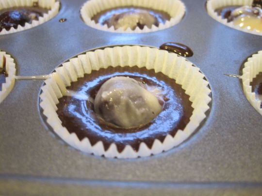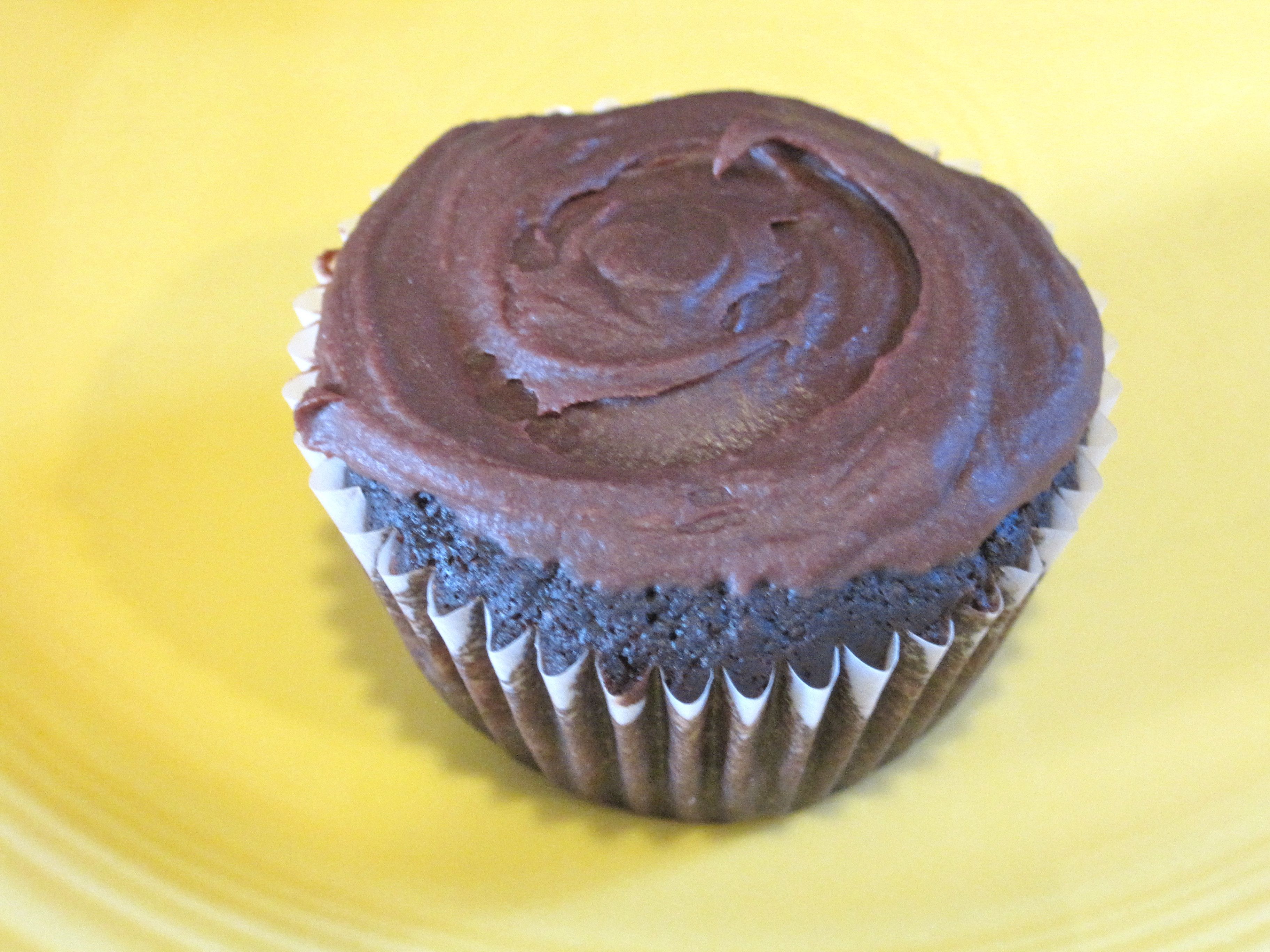 After the cakes were cooled, I dipped them in softened ganache. They weren’t the most beautiful cupcakes in the world, but I think they turned out very tasty! The cake and ganache weren’t overly sweet and the cherry inside made them very moist.