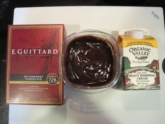 I started off my cupcakes by making dark chocolate ganache for the icing. I used 4 ounces of bittersweet chocolate which I melted into 1/2 cup of heavy cream
