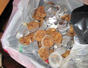 Things were going so smoothly. I shouldn’t have even said it aloud. Cakes for caramel popcorn were done and in a container. French Toast cakes (mini bread puddings really) were cooling. I had a bit of a rest… Then I went to taste the French Toast.