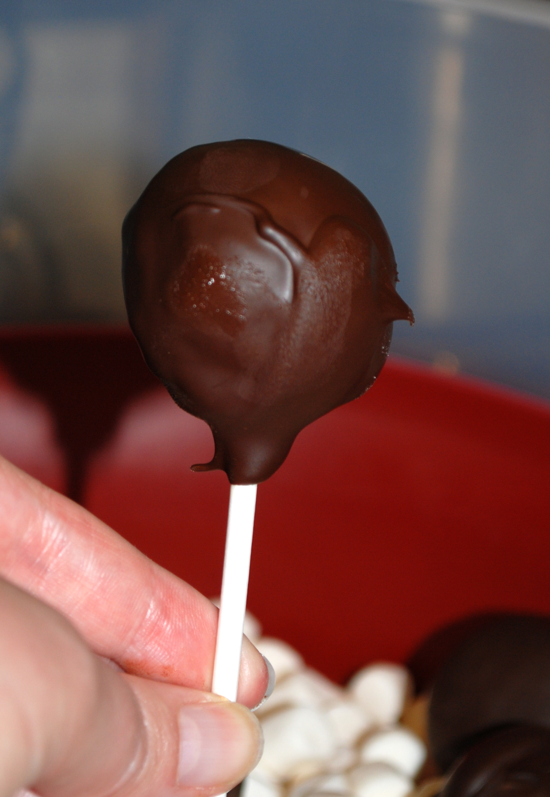 Day 3: I had about 1/2 of a pack of Candiquik left over from last time. (Clean up on this is really easy…put a lid on the bowl and put it in the cabinet. It can be remelted later.) I added some dark chocolate chips to this and melted it together. I started off pulling out the leftover coconut from the pantry to dip these in. I also had some toasted chopped pecans on hand. Mr Shuck got into the fun and pulled out wasabi powder and a jar of PB2 (powdered peanut butter)