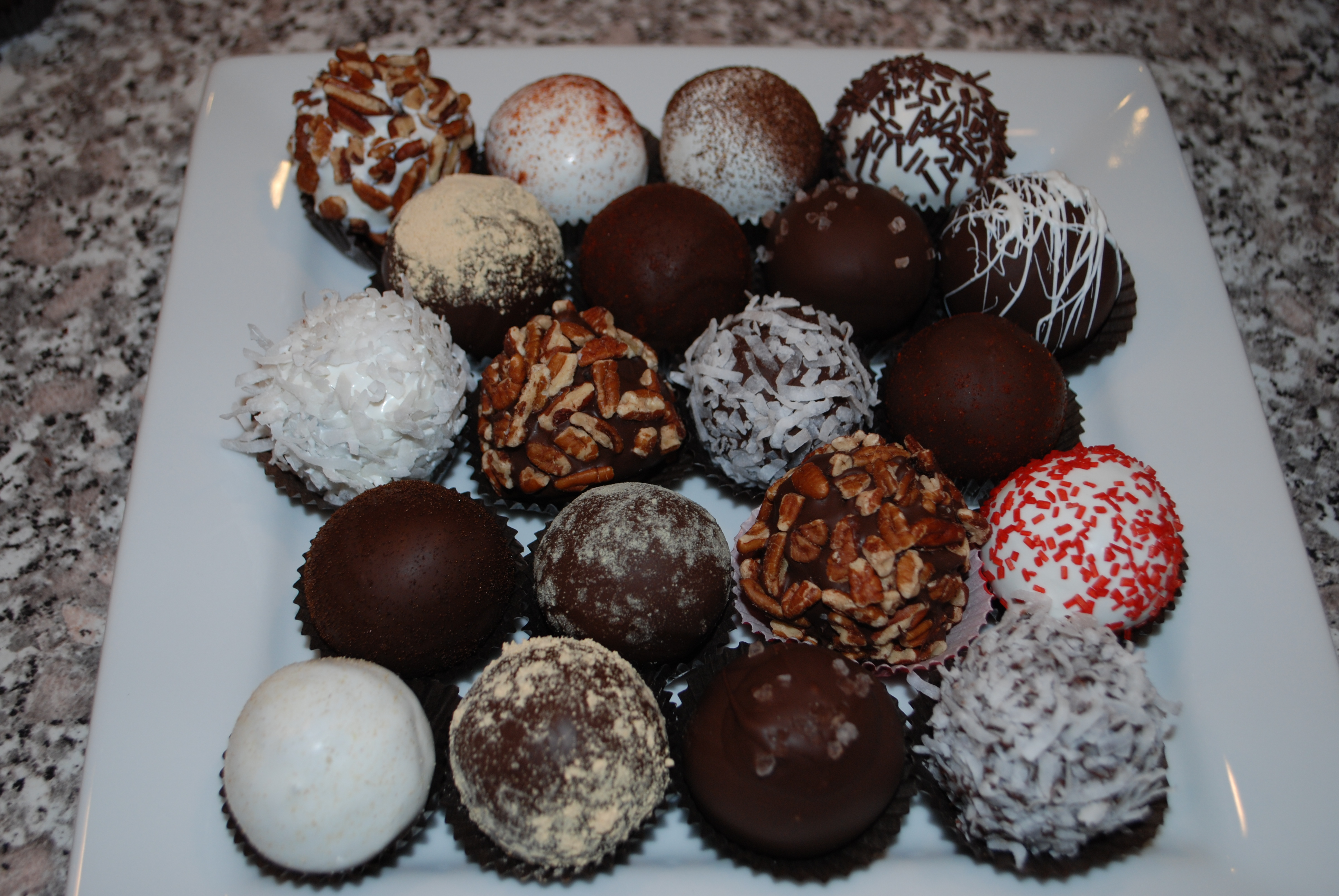 I so enjoyed making the football shaped cake truffles for the SuperBowl that I went a little truffle crazy… I did this over a couple of days. I took no photos except for the end result. My apologies. Next time…