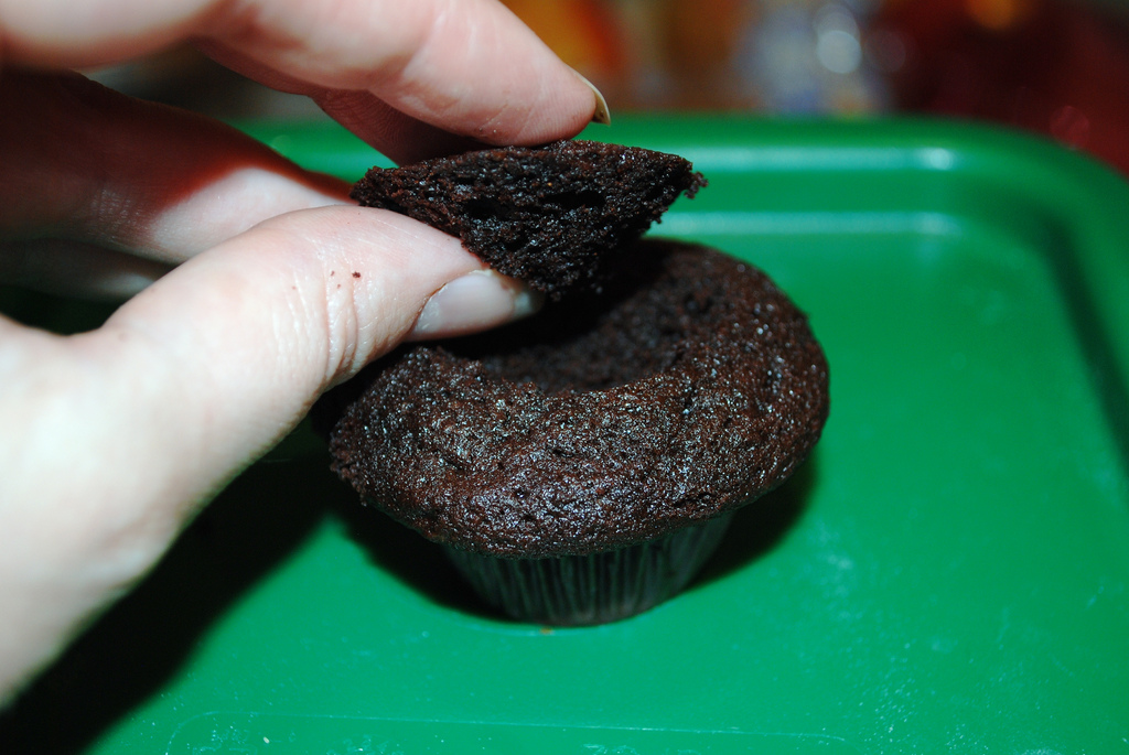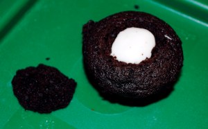 I wasn’t expecting much from the chocolate peanut butter cupcake. After all, it was vegan AND gluten free! I was pleasantly surprised though. I’m not saying that it was an incredible cupcake; it was a decent cupcake. The icing was peanut buttery and smooth. The cake was rich and fairly moist. I liked it overall. If I decided to give up all animal products, I’d give it another whirl. Until I go completely vegan, I’d rather have my icing made with butter or egg whites from some blissfully happy and well treated cows and chickens. I don’t think that my palate is sophisticated enough that I could detect oil rather than butter in a cake batter.