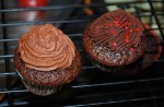 So…I didn’t really expect a lot from a mass produced cupcake. I assume that these are shipped to the Cinnabon shops I can’t imagine that all of the workers are trained to pipe these icings designs. The cake was moist and very dense. The texture was somewhere between a Cinnabon and cake. It was nicely cinnamon-y and I really liked it. However…the icing…oh, the icing….BLEH! I’m not sure if the “signature cream cheese frosting” is the same as the glaze on the cinnamon rolls. I don’t recall being repulsed by that…but, then, after I learned that a Cinnabon has about 1000 calories, I haven’t felt the need to indulge… I am also going to assume that if the cupcakes are shipped in from parts unknown that the icing is composed mainly of shortening. It tasted like shortening and sugar…also known as grocery store icing. I didn’t get any cream-cheese-tangyness and the cinnamon caramel swirl was slightly bitter. Needless to say, most of the icing went into the trash.